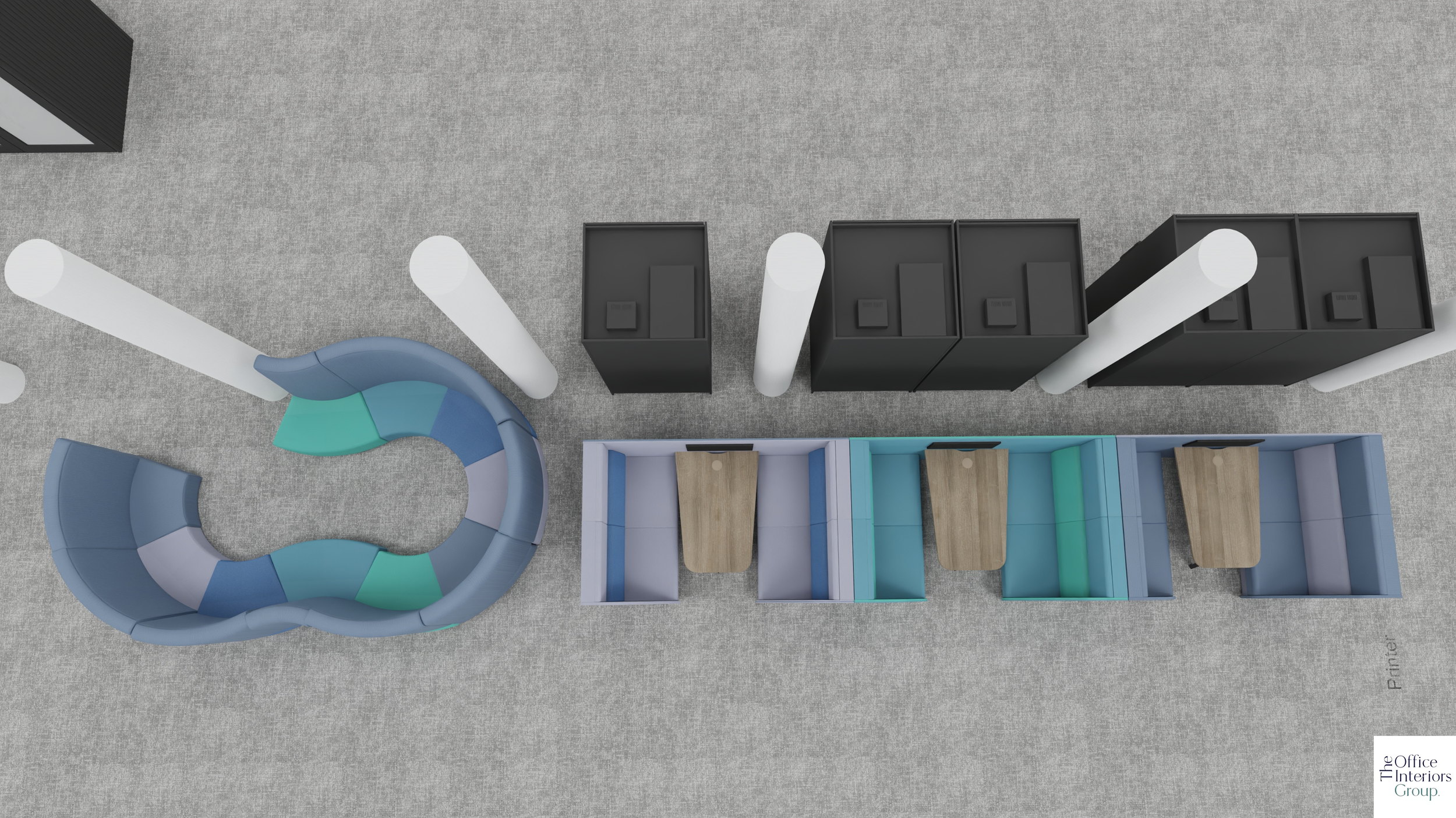 Our final solution delivered on every part of the brief. The tailored seating formed a defined, enclosed zone within the wider environment, improving acoustic comfort and usability while maximising the footprint around the columns.